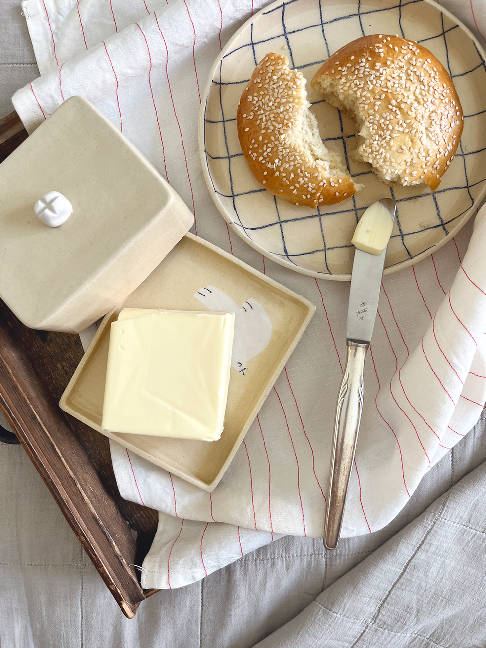 Je vyrobený z lokální české hlíny s jemným šamotem a pokrytý průhlednou lesklou glazurou, která talíř chrání před vlhkem a mastnotou.